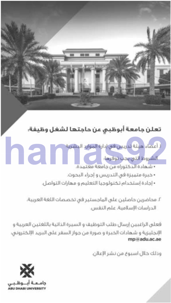 وظائف جامعة ابوظبي لمختلف التخصصات 15000 وظيفة