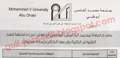 اعلان وظائف شاغرة بجامعة محمد الخامس ابوظبي ابريل 2017