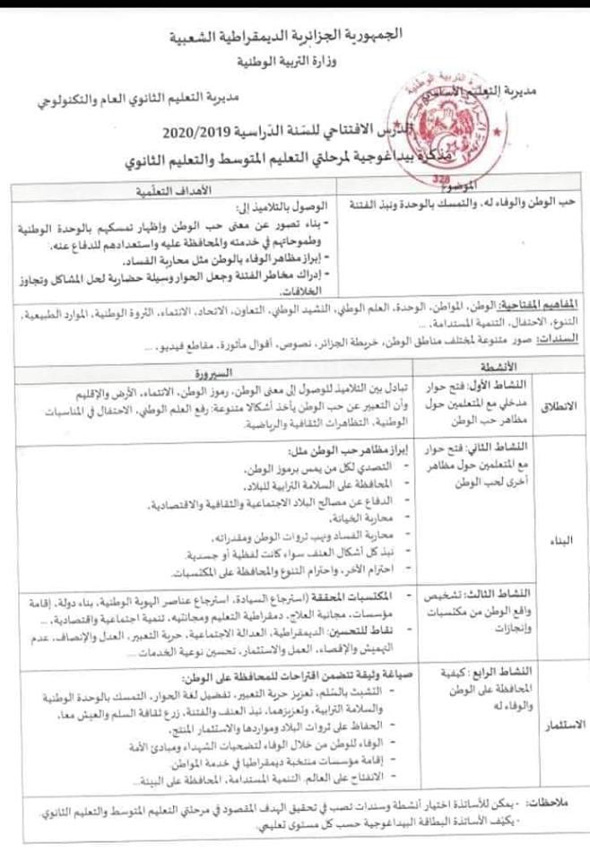 الدرس الافتتاحي للسنة الدراسية 2019 2020 حب الوطن و و الوفاء له والتمسك بالوحدة منتديات الجلفة لكل الجزائريين و العرب