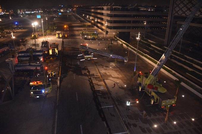 قوات الدفاع المدنى فى مدينة جدة تحاول السيطرة على حريق محطة قطار الحرمين اليوم 29 سبتمبر 2019 اليوم الإخباري