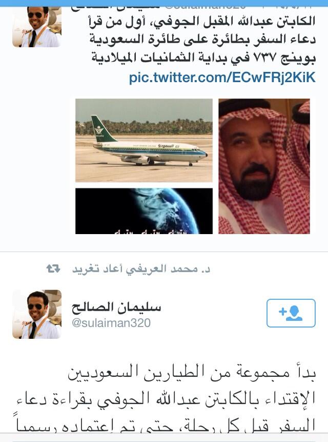 هاشتاق الجوف Auf Twitter معلومة عن الجوف أول من سن دعاء السفر على متن الطائرة هو ابن الجوف الكابتن طيار عبدالله الجوفي Http T Co Ema4ysykmi