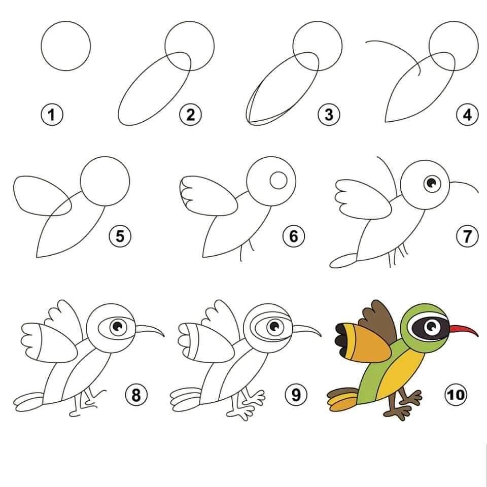 طريقة رسم عصفور للاطفال