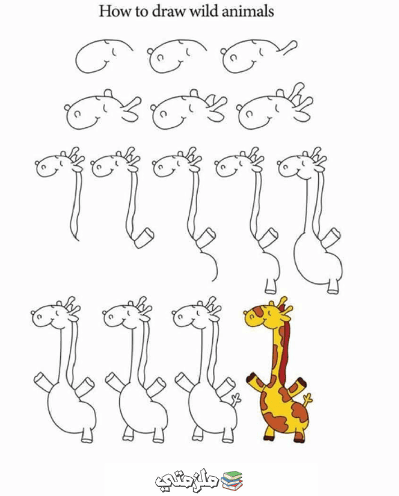 تعلم رسم زرافة خطوة بخطوة تعليم الرسم تعلم الرسم